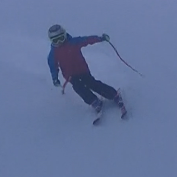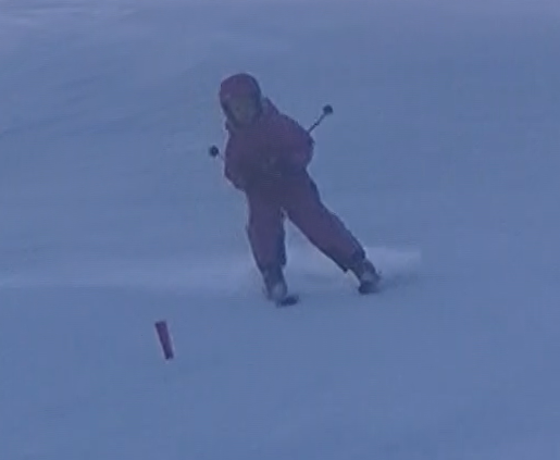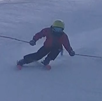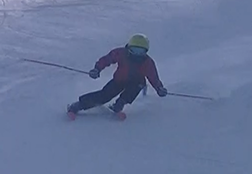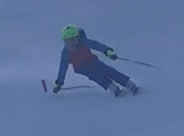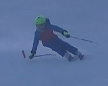 Damian Tlachač: paralelní vedení lyží OK; zlepšit postoj a vedení lyží po hranách, pozor na jízdu po vnitřní lyži a kácení celého těla do oblouku (zlepšit zalomení)