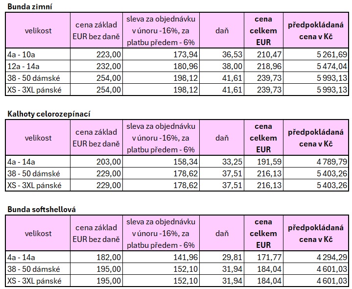Závazné objednávky prosím zasílejte na oddílový email lyzari@skjanskelazne.cz nejpozději do 25.2.2026.